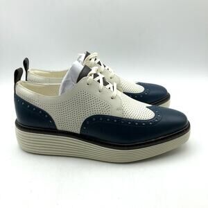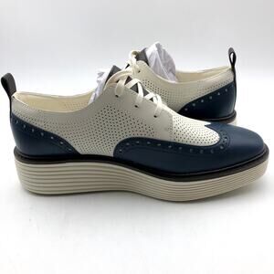 Cole Haan ØriginalGrand Platform Wingtip Oxfords 7.5 B Blue Ivory Leather NIB