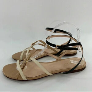 Cole Haan womens sandals size 8.5 black tan leather strappy ankle strap minimalist