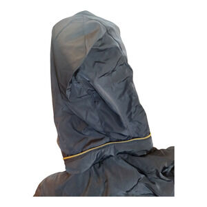 Cole Haan signature down feather puffer coat sz XL faux fur zip front navy brown