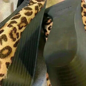 Calf hair and patent leather! So nice and well made. Soles look practically new, very minimal wear on these babies! 2” wedge.