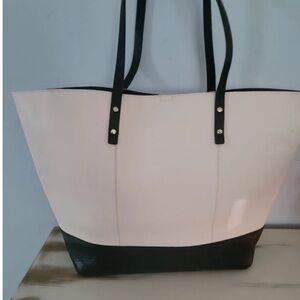 Cole Haan tote bag large cream & navy w/ removable interior pocket Vegan Leather