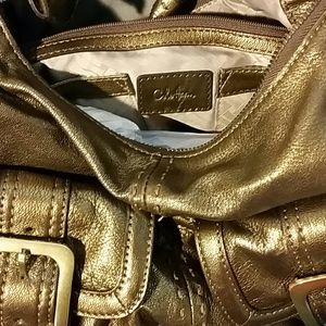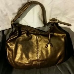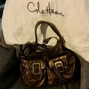 Bronze leather Cole Haan handbag 10x15x2 never used, mint condition. Perfect size for holding all your stuff without being too heavy. Has a great sheen to it, I'm just not the flashy type of gal! I prefer more neutrals. I've marked this down a lot, I want to find it a good home.