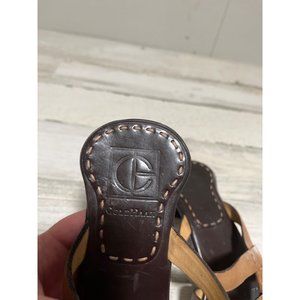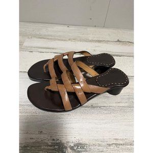 Cole Haan woman’s tan toe sandals size 7.5. Has 1.5” heel approximately. Made in Brazil. Good pre-owned condition.
