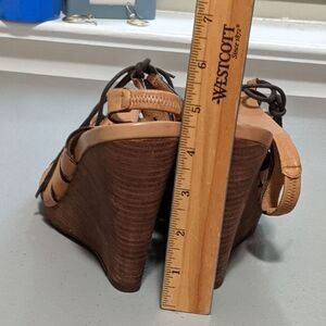 Cole Haan women's sky lace up gladiator wedge platform leather caged sandal 9B