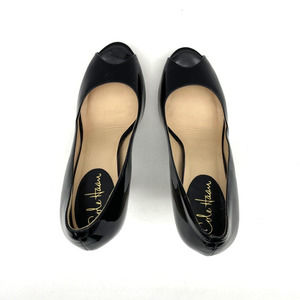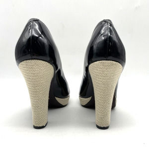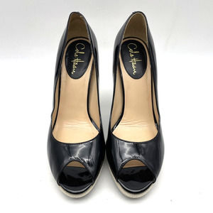 Cole Haan x NikeAir Black Patent Woven Platform Peep Toe Platform Heels 8.5B