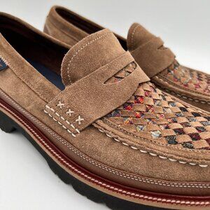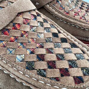 Suede leather weaved with Pendleton plaid fall winter loafers tan brown