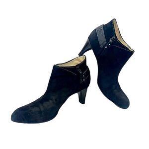 Cole Haan zipper up suede side buckle heel booties size 8B