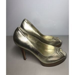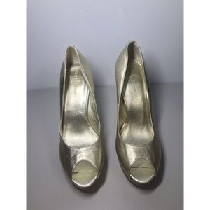 Cole Haan Gold Metallic Leather Peep Toe Stiletto Heels Women’s Sz 9.5B US/40EU