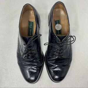 Nice pre-owned Cole Haan dress shoes Size 10 E, slightly wider than normal. They have a good shine to them with a lot of life left.