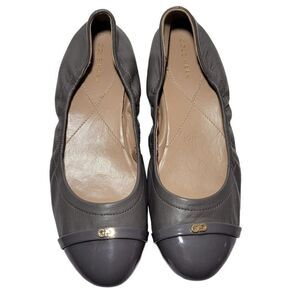 Cole Haan Elsie Ballet Flat Shoes Womens 8B Patent Cap Toe Gray Soft Leather