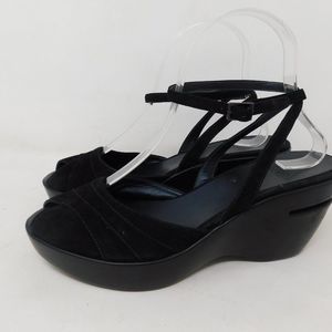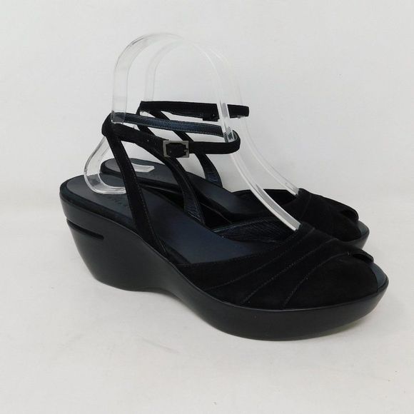 Cole Haan black platform high heels Suede peep toe Wraps around ankle and buckles Size 8.5 822 #23