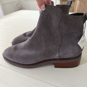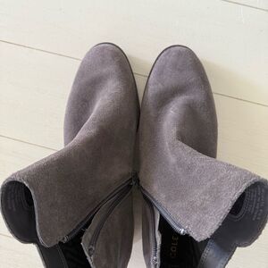 Cole Haan River Suede Booties in Gray with Wood Block Heel NWOB