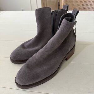 Cole Haan River Waterproof Suede Booties in Gray with Wood Heel 8.5 NWOB