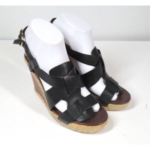Cole Haan Strappy Black Leather Brown Wedge Slingback Sandals Women 6.5