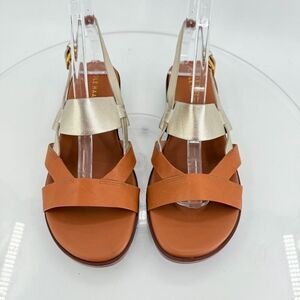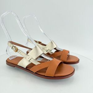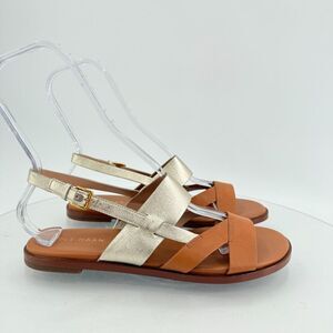 Cole Haan Women Leather Slingback Fawn Sandals Brown Gold Flat Size 8.5 B W30285