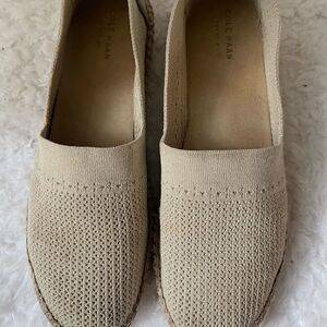 Cole Haan knitted Khaki lite Espadrille Loafer strings of gold threads size 10B pre owned in good used condition see all pictures any questions please message.L1