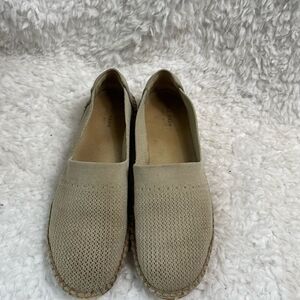 Cole Haan knitted Khaki lite Espadrille Loafer strings of gold threads size 10B