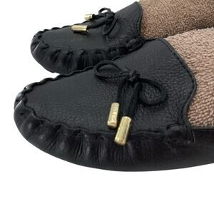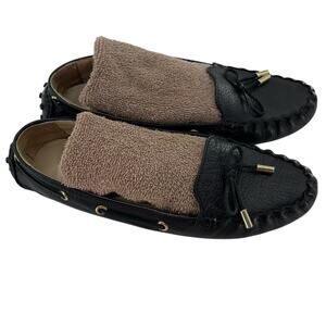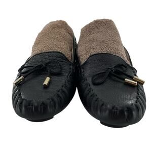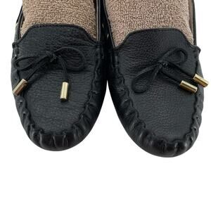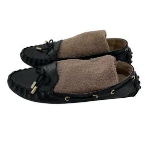 Cole Hahn Black Leather Driving Loafers Moccasins Tie Gold Details Size 8.5