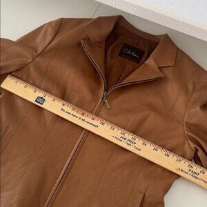 Cole Hann Lambskin Leather Jacket Womens Small Full Zip Tan