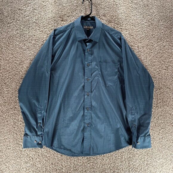 Cole Hann Shirt Mens Large Blue Check Long Sleeve Button Up Grand Series Adult