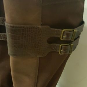 tall boot, goes over calf and sits below knee. small scratch as shown in photo 3. no smells and no damage. rubber soles. ask questions and make me an offer!