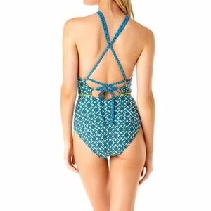 Anne Cole One Piece Geometric Swimsuit Floral Blue White Womens Size 8 in very good used condition. No rips, holes or stains. Please see pictures for item description.