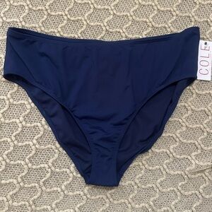 Blue two piece floral design Top solid blue bottom stretchy material 88% nylon 12% spandex lining is 100% polyester