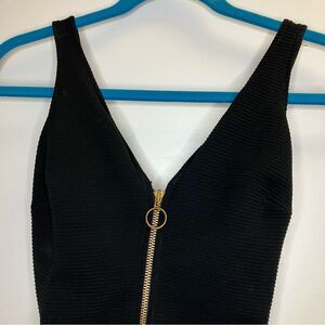 Cole of California Vintage Black Ribbed one piece Swimsuit Pin Up Zip Front Sexy