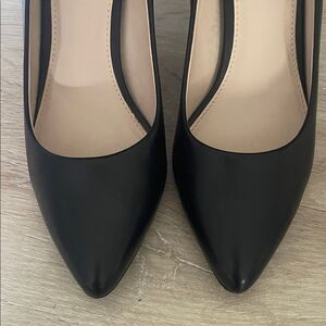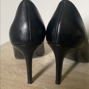 Gently worn! Sleek pointy toe black leather 3.5” heels. Perfect for formal events. Comfortable and stylish design.