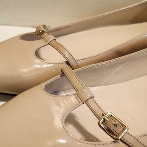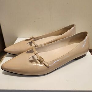 Cole Haan " Grand OS" Cream Patent Leather T-Strap Mary Jane Pointy Flats