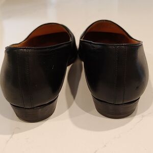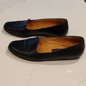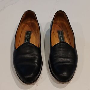 Cole-Haan Kathan Leather Slip-On Loafers in black. Leather upper, leather insoles and leather outer sole. Gorgeous leather women's shoe in a classic style. They don't make them like this anymore! Made in Italy. Size 8AA.