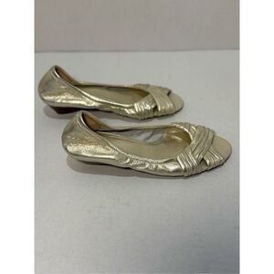 Cole Haan Peep Toe Metallic Soft Gold Low Wedge NikeAir Sole Women’s Size 6.5