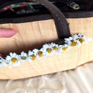 Cole Haan Spring 🌼Daisy Straw/Leather Mini Tote Bag