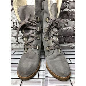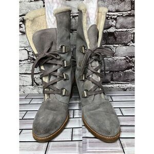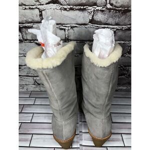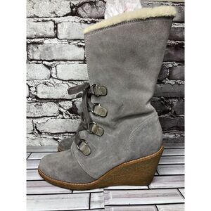 Cole Haan Waterproof Gray Suede Shearling Wedge Comfort Winter Boots Women Sz 9B
