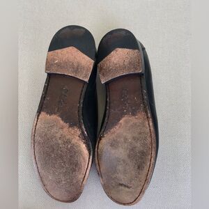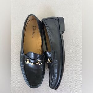 Cole Haan means Black Leather Loafers with Gold Detail