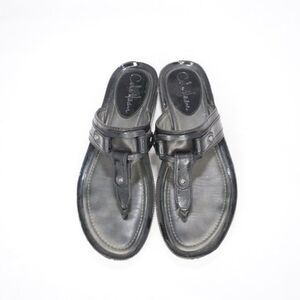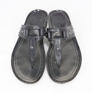 Cole Haan Black Leather T-Strap Thong Sandals, 6.5