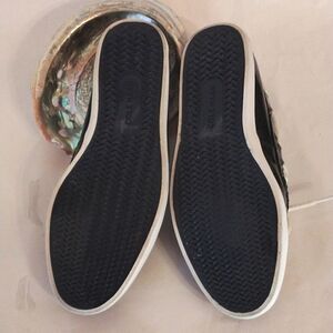 Great navy blue patent leather boat shoes. Woven lace around top. Loafer with moc styling. White sole. Excellent condition. Size 9 measures 3 5/8 wide, 10.5 long. Great looking, and ready for fun!