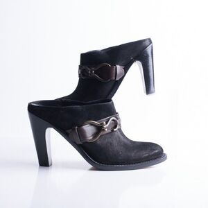 Womens Black Leather suede clogs mules Heels