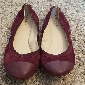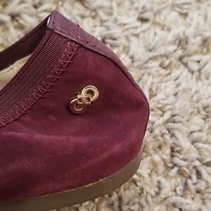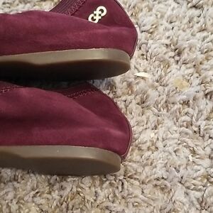 These flats are adorable and in great condition. The insoles and bottom soles look good. There looks to be a bit of wear around the heels where the shell meets the soles, but it isn't that noticeable due to the color shifts in the suede anyway. The toes are faux leather.