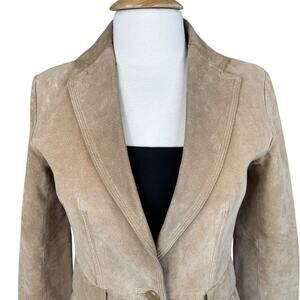 Colebrook Classics Genuine Leather Suede Camel Tan Collared Jacket Size Small