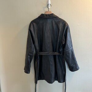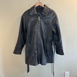 Colebrook & Co. Leather Jacket Womens Size Medium Black Zip Up Belted Vintage