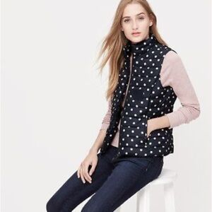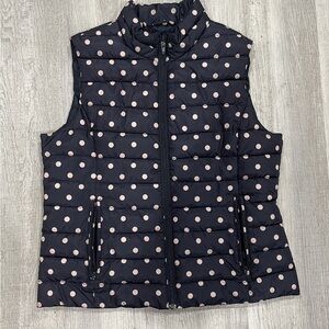 Colebrook Essentials Vest Puffer Vest Quilted Navy Blue and Tan Polka Dot Womens M small Retail $79 Measurements Chest 17” measured flat across (fits up to a size 34” chest) Length from shoulder to hem 22”