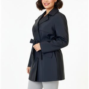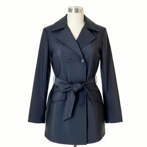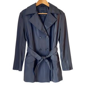 Colebrook VTG 90s Y2K PVC Black Waterproof Short Belted Trench Coat Jacket Sz S