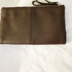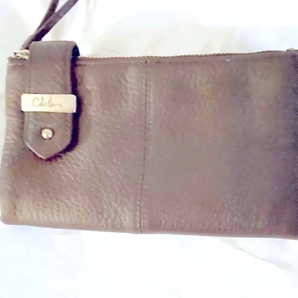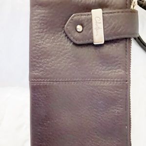 Cole Haan wallet six credit cards slots and id pocket two zipper pocket in both sides color is brown is in good condition