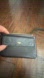 Elegant black leather wristlet, perfect for any occasion. Features a sleek design with a convenient wrist strap.