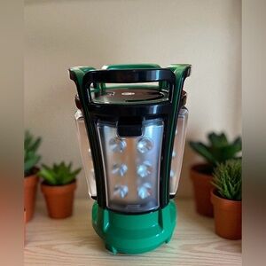 Illuminate your space with this stylish green and black Coleman camping lantern