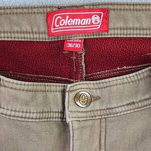 Coleman Fleece Lined Pants Mens 36 x 30 Toffee Brown Utility Stretch Canvas Work Outdoors