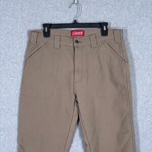 Coleman Insulated Carpenter Pants Mens 32 Canvas Rugged Stretch Work Actual 34x28 Pockets Khaki Tan Beige