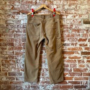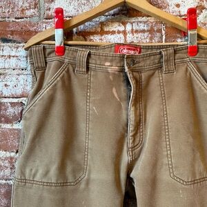 Bleach stained work pants with a green fleece lining. Still a great pair of work pants. 36x30