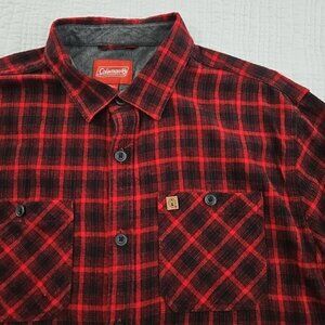 Coleman Midweight Flannel Shirt Men's XXL Red Black Plaid EUC LN Long Sleeves